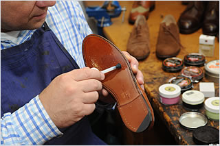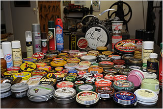Entweder mit einer Wachspaste oder einer dünnflüssigen Schuhpflegecreme.