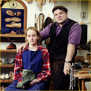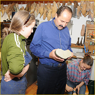 Lafer beim Testen des Probeschuhs |