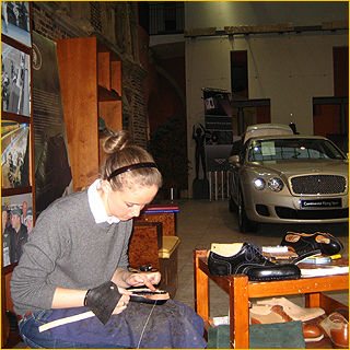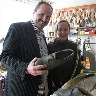 bei der Übergabe seiner Straußenlederschuhe |