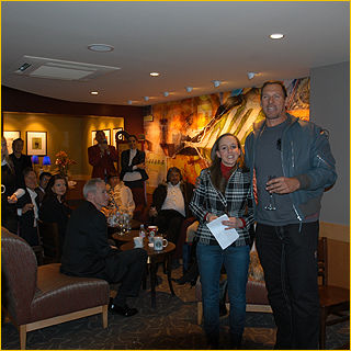 die Laudatio bei Kim Himers Werkstatteröffnungsfeier im Starbucks-Café |